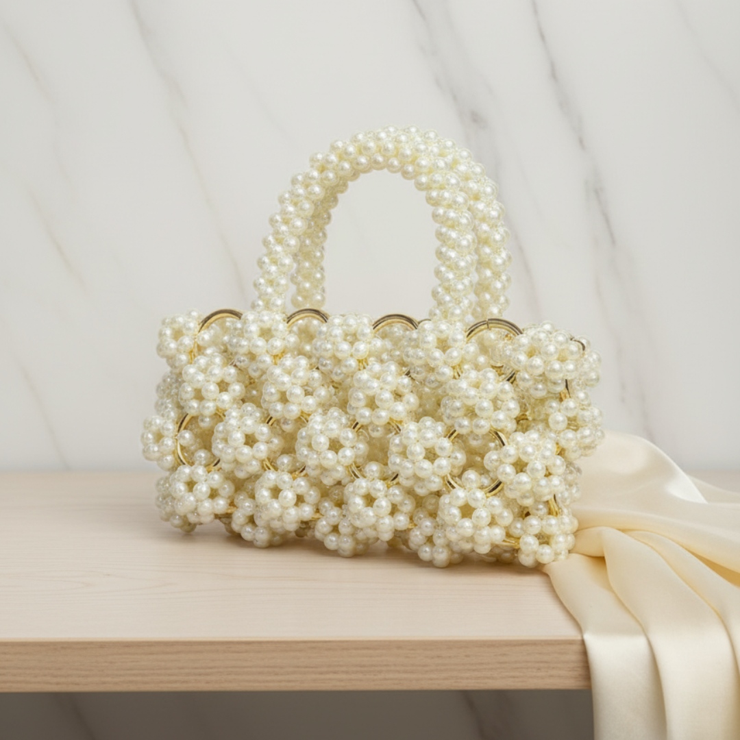 Add timeless charm to your wardrobe with this Pearl Beaded Designer Handbag for Women, designed to make every look effortlessly elegant. Crafted with intricate pearl embellishments and gold-tone accents, this handbag reflects luxury, grace, and refined craftsmanship.